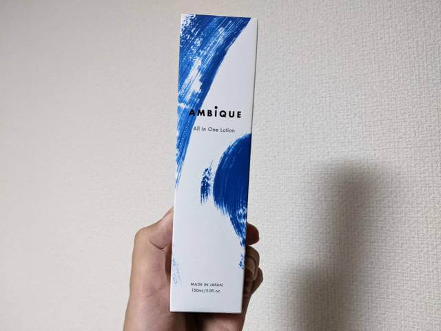 中身は外箱と比較するとだいぶシンプル。白地にAMBIQUEという黒文字があるくらいのかなりシンプルなデザイン。