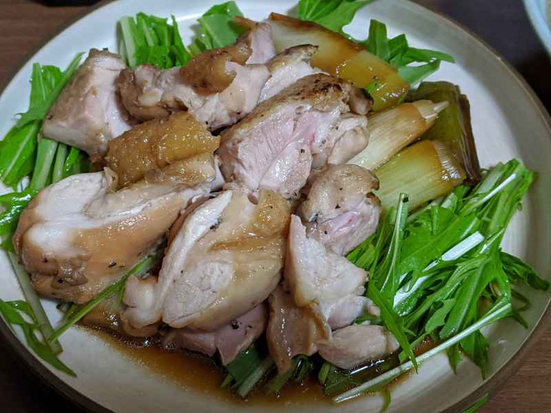 ※鶏肉を焼くときに長ネギも焼いて一緒に低温調理しても大丈夫です。